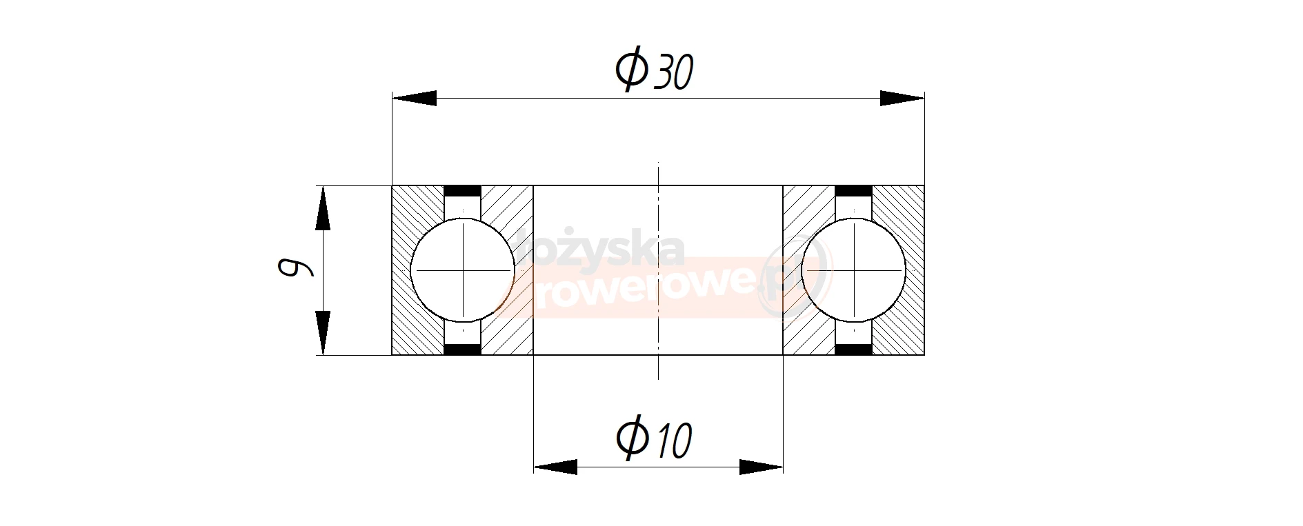 Łożysko 6200-2RS 10 x 30 x 9 z bieżniami wykonanymi ze stali chromowej, dwustronnie uszczelnione - stykowo, przez uszczelki nitrylowe (NBR) z metalowymi wkładkami. Bieżnia zewnętrzną posiada rowki, w które wchodzą wargi uszczelki, powodując lepsze uszczelnienie łożyska. Bieżnia wewnętrzna nie posiada rowków. Tutaj uszczelka delikatnie dochodzi do powierzchni bieżni, dzięki czemu minimalizowane są opory ruchu.
