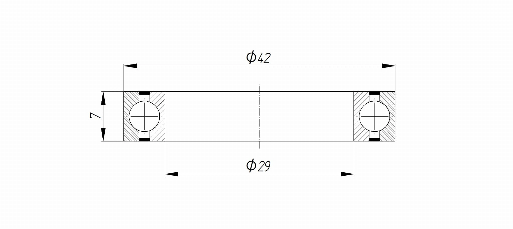 Łożysko suportu 6806/29 29 x 42 x 7 z bieżniami wykonanymi ze stali chromowej, dwustronnie uszczelnione - stykowo, przez uszczelki nitrylowe (NBR) z metalowymi wkładkami. Bieżnia zewnętrzną posiada rowki, w które wchodzą wargi uszczelki, powodując lepsze uszczelnienie łożyska. Bieżnia wewnętrzna nie posiada rowków. Tutaj uszczelka delikatnie dochodzi do powierzchni bieżni, dzięki czemu minimalizowane są opory ruchu.