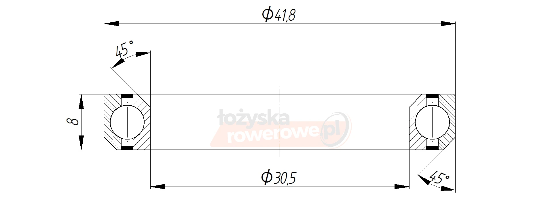 Łożysko sterów MH-P08H8 30,5 x 41,8 x 8 x 45/45 dwustronnie uszczelnione.